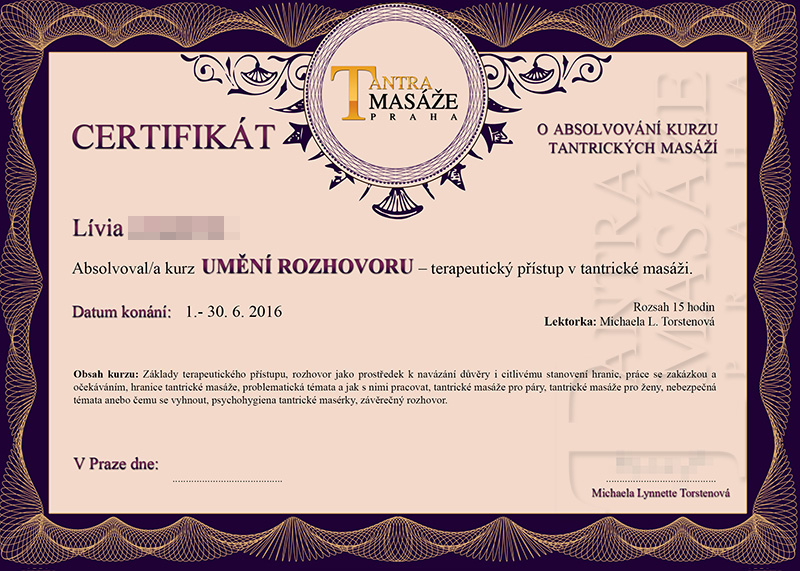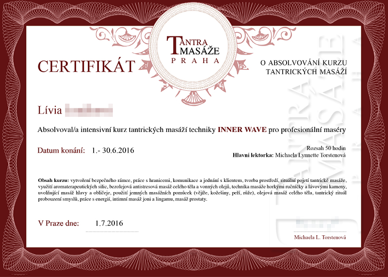 Miluji doteky, spontánnost a přirozenou rozdílnost mezi lidmi, které považuji za jednu z mnoha cest k uzdravení těla i duše, a k získání zdravé sebelásky. Prostřednictvím tantrické masáže se učíme, jak být přítomni ve vlastním těle, uvědomit si jeho krásu, zbavit se nechtěných bloků, shodit masky a opět rozproudit životní sílu, která nám tak často chybí. Pokud se dokážeme zcela otevřít, zpřítomnit a přistupovat k tantrické masáži vědomě, s vážností, pokorou a láskou, léčebný efekt se dostaví. Tantrickou masáž vnímám jako cestu poznávání sebe sama, svých hranic a možností, ale i jako rituál, při kterém je mi umožněno projevit vlastní kreativitu, což je pro mě jako pro ženu, pro kterou je tvoření nedílnou součástí života, opravdu důležité. Právě nadšení z tvůrčího procesu a zpětná vazba, je pro mě motivací, se kterou přichází pocit naplnění a uspokojení vlastních potřeb, z nichž největší je potřeba dávat.